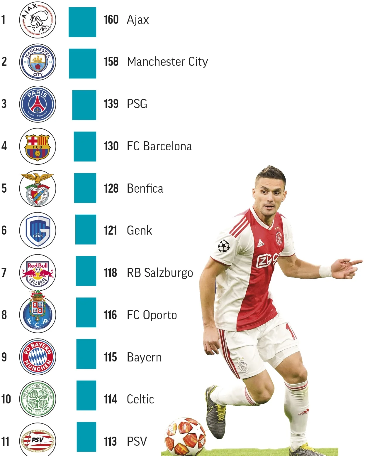 Ні Манчестер Сіті (158 голів), ні Парі Сен-Жермен (139), ні Барселона (130), ні Бенфіка (128)... Жодна команда Європи не перевершує 160 м'ячів Аякса, проведених у сезоні 2018/19: Ередивізія – 111, Ліга чемпіонів – 32, Кубок Нідерландів – 17. Свій неймовірний гольовий доробок нащадки легендарного Кройфа можуть покращити вже цієї ночі на новенькому стадіоні Тоттенхема, повернувшись до півфіналу Ліги чемпіонів вперше за 22 роки.