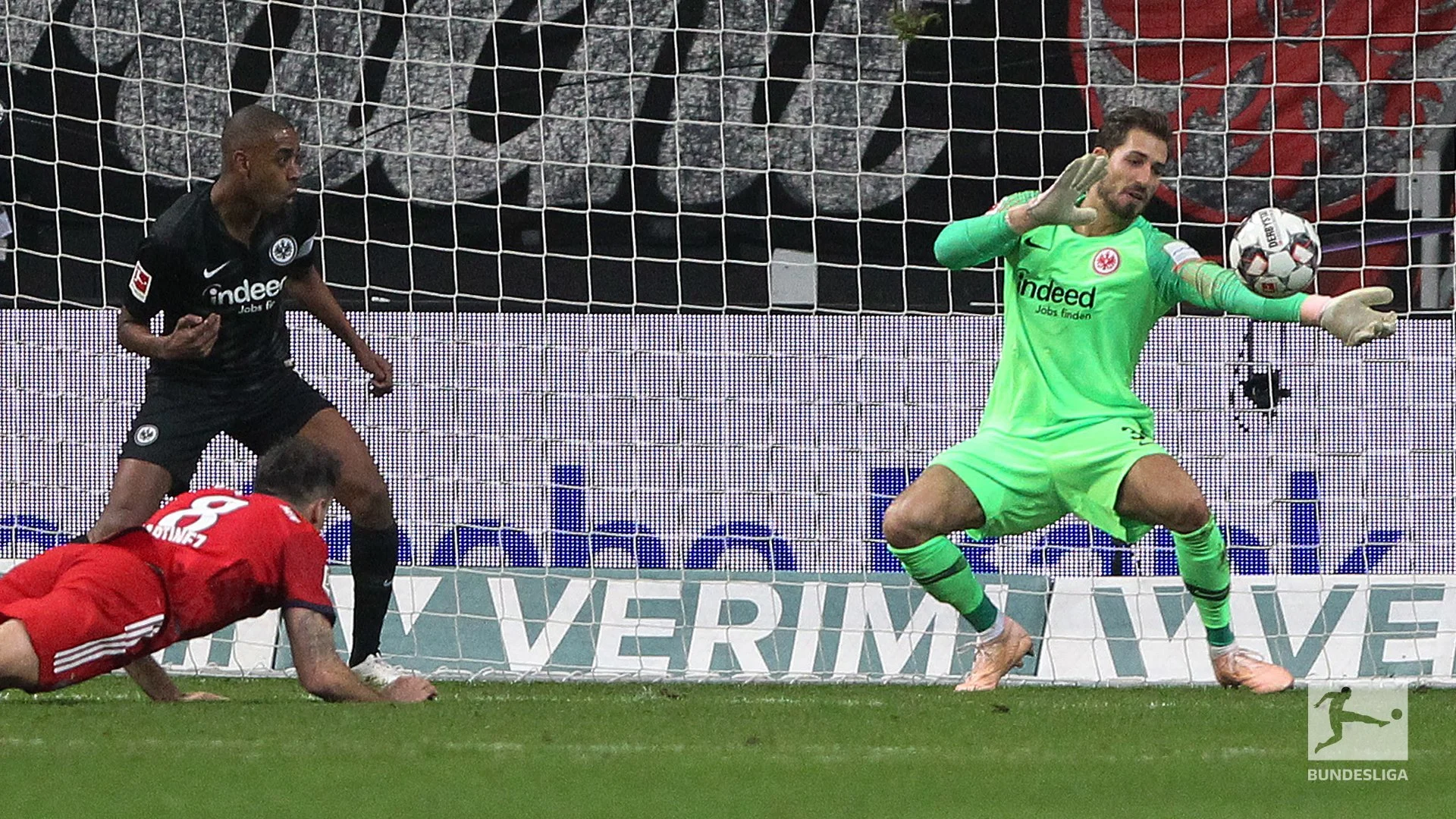 Баварія не могла зайти в чужі володіння з гри, але зуміла класно відповісти зі стандартів. Героєм Айнтрахта став голкіпер Трапп – 3 сейви протягом хвилини. Добре парирував удар зі штрафного від Алаби, а потім творив дива після подачі з кутового. Захисники загубили в центрі штрафного майданчика Мартінеса – удар головою Трапп не без проблем потягнув. За півсекунди воротар Франкфурта піднявся та взяв неоковирне добивання Мюллєра.
