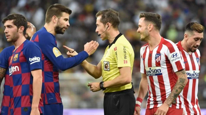 Другий півфінал Суперкубка Іспанії обслуговувала бригада арбітрів на чолі з Хосе Луїсом Гонсалесом Гонсалесом. Дії цієї компанії не сподобалися від самого початку: по-перше, дивував вибірковий лібералізм рефері – футболісти Атлетіко активно застосовували звичну для себе тактику дрібного фолу й кілька разів діяли аж занадто грубо, однак за кількістю порушень правил у першому таймі несподівано вела Барселона – 9:6.