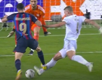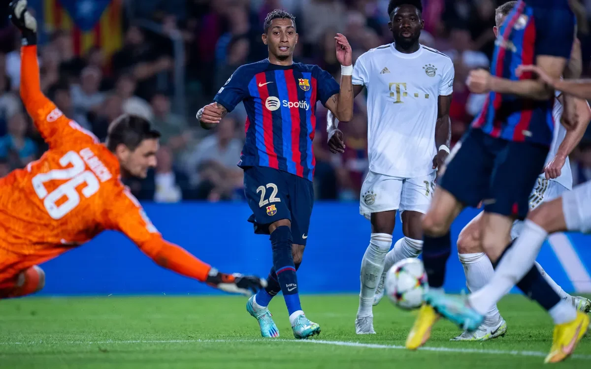 Вперше увійти у штрафний футболістам Барселони дозволили аж на 25-й хвилині, а до перерви команда провела всього 8 дотиків у периметрі. При цьому підопічні Хаві завдали лише 1 удар – Лєвандовскі зі стандарту пробив у стінку. Крім того, на 44-й хвилині Роберт міг заробити пенальті внаслідок зіткнення з Де Лігтом, однак відеоповтор показав грубий фол з боку поляка.