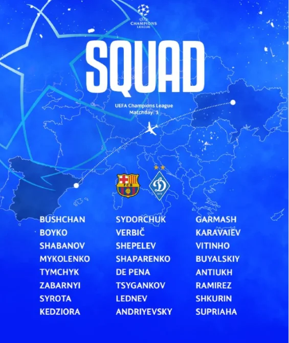 Барселона – Динамо: кияни оголосили склад на матч Ліги чемпіонів