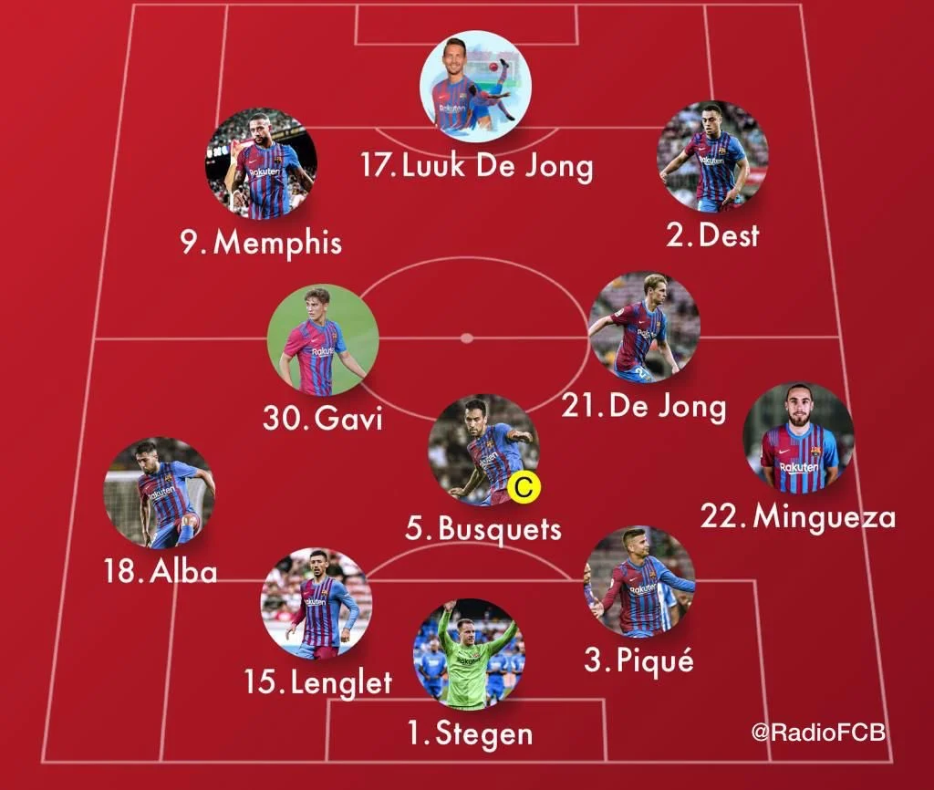Рональд Куман довірився Люку Де Йонгу, який спробує повторити свій гольовий матч з Леванте на цьому ж полі. Розрахунок на те, що вдасться задавити суперника навісами, як в деяких недавніх іграх чемпіонату Іспанії? З іншого боку один з героїв вікенду, Ансу Фаті, завжди може вийти по перерві та видозмінити малюнок гри. Інші зміни після тріумфу над Валенсією – Мінгеса та Лангле замість Серхі Роберто й Еріка Гарсії.