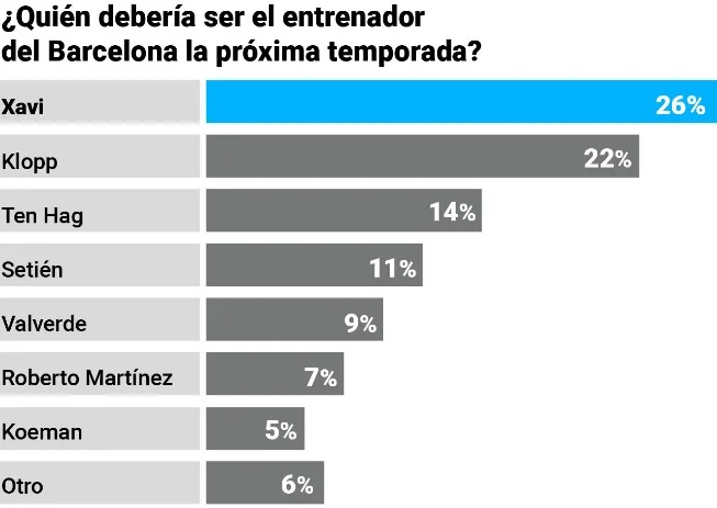 Цікаво, що за результатами опитування видання Marca, яке попросило своїх читачів назвати наступника Вальверде, Хаві посів перше місце з 26% голосів. Другий – Юрген Клопп (22%), а третій – Ерік тен Гаг (14%). Далі слово за Бартомеу.