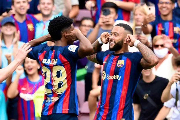 Не забарився і другий гол. Його зробив Мемфіс Депай, забивши свій перший м'яч у сезоні. Нідерландець отримав пас у штрафному від Бальде, розвернув захисника і пробив під поперечину. Розкішно. VAR знову зіграв за Барсу, ставши на бік господарів у ситуації з можливим офсайдом. Другий гольовий пас Алехандро Бальде.