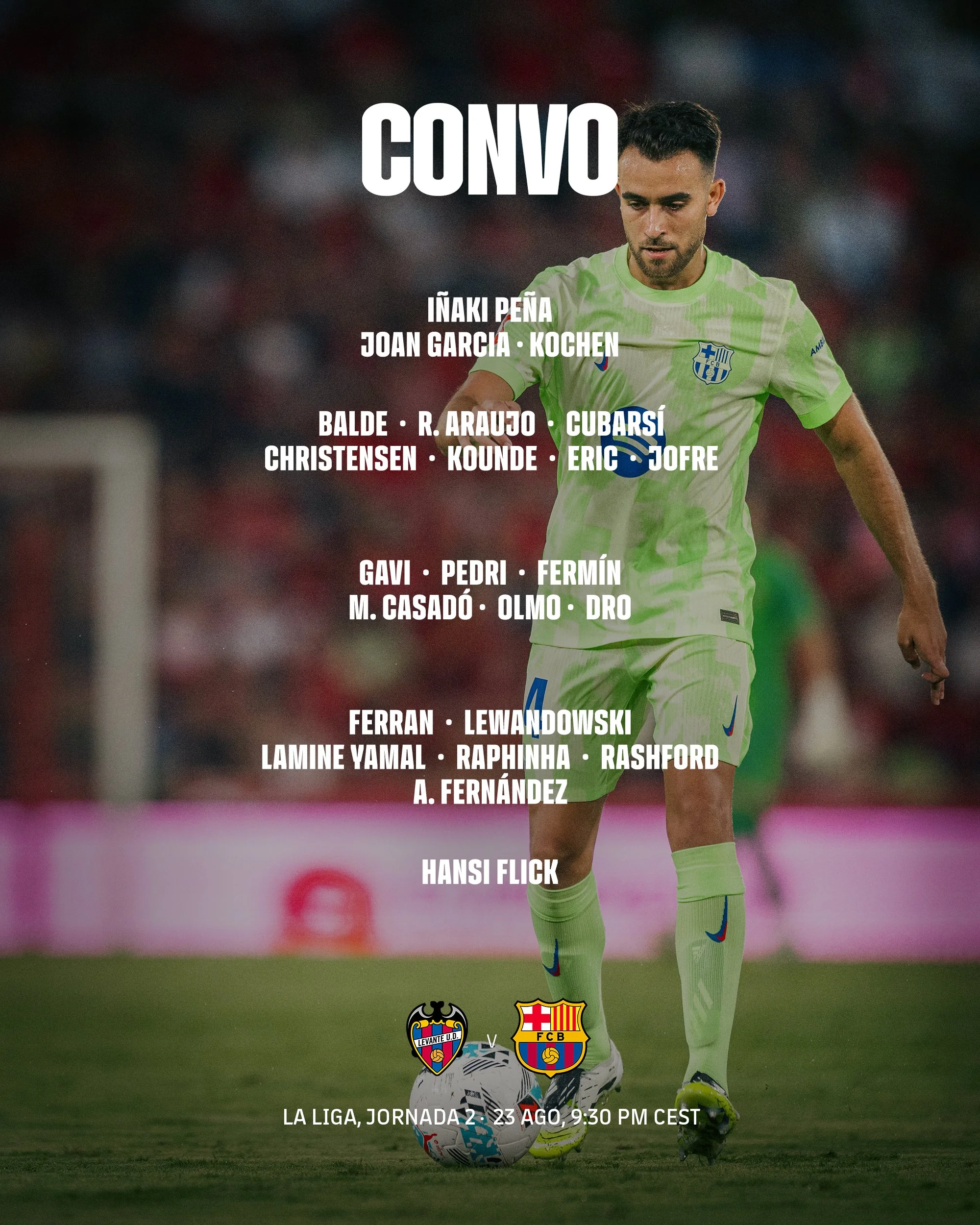 Головна новина – повернення Роберта Лєвандовскі, який залікував травму. Втім, Барселона не встигла заявити захисника Жерара Мартіна. Також недоступний Френкі де Йонг, але тут оказія приємна – у нідерландця народилась друга дитина.