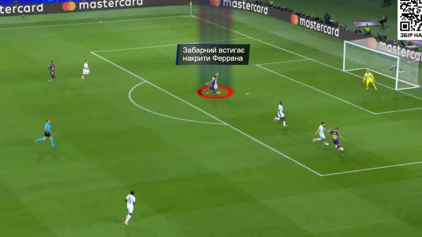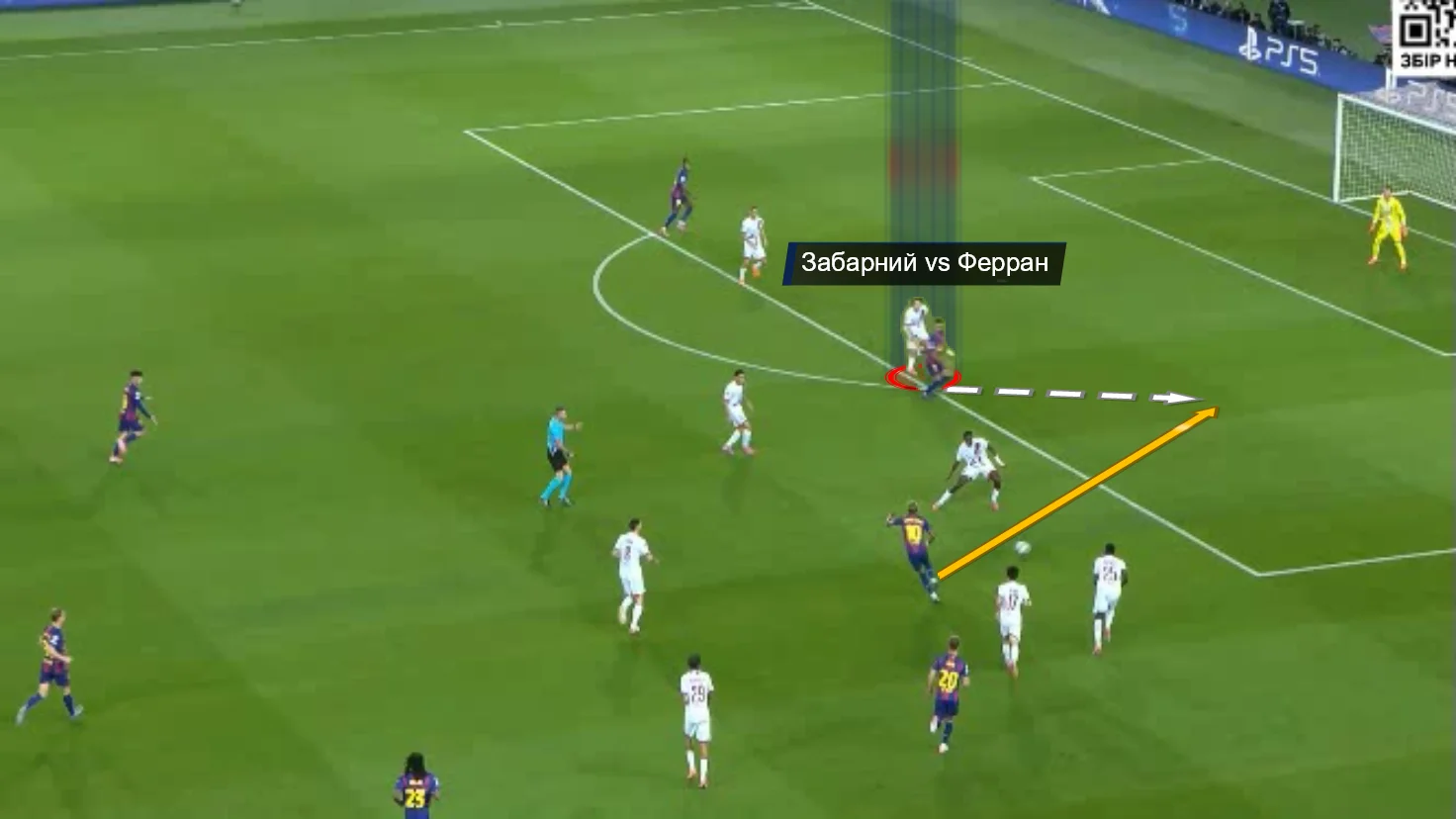 Та і в моменті з голом Торреса здалося, що наш легіонер відпустив Феррана й зовсім не встигав за ним. З іншого боку, то був одиничний випадок, а проблема крилася не стільки в Забарному, скільки в базовому широкому розташуванні центрбеків ПСЖ.