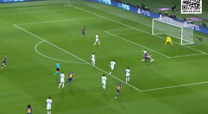 Ще через п'ять хвилин Барса вийшла вперед. Вітінья під тиском трьох обрізався в центрі поля, викотивши пас Ямалю, а Ламін одразу ж скинув м'яч Педрі. Той миттєво перевів на лівий кут штрафного в ноги Рашфорду – Маркус виконав простріл у дотик, а Ферран замкнув без спротиву. Нападник уникнув офсайду, адже лінію потягнув Хакімі. Питань до Забарного немає.