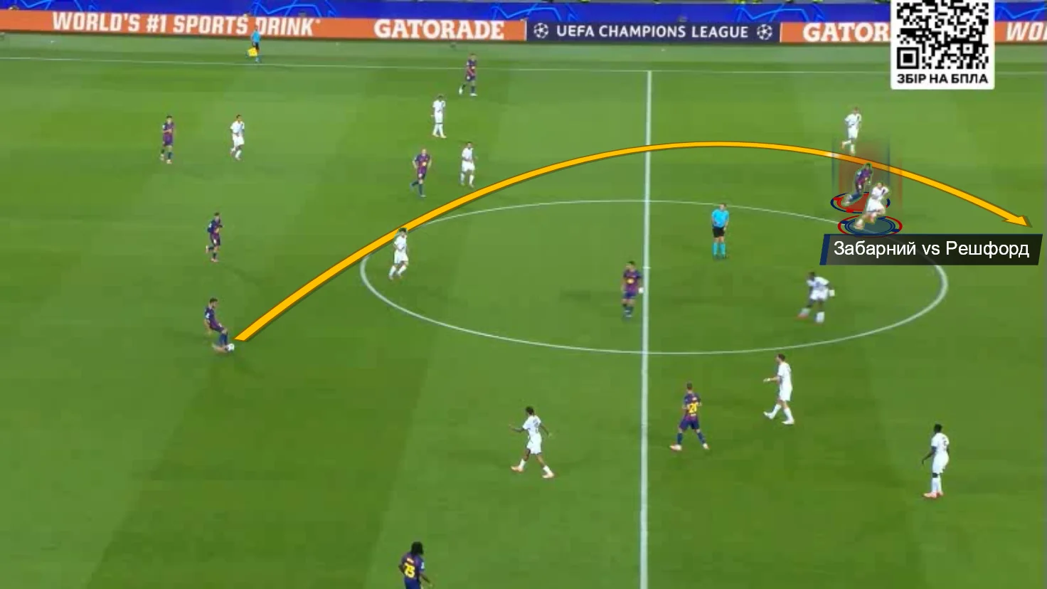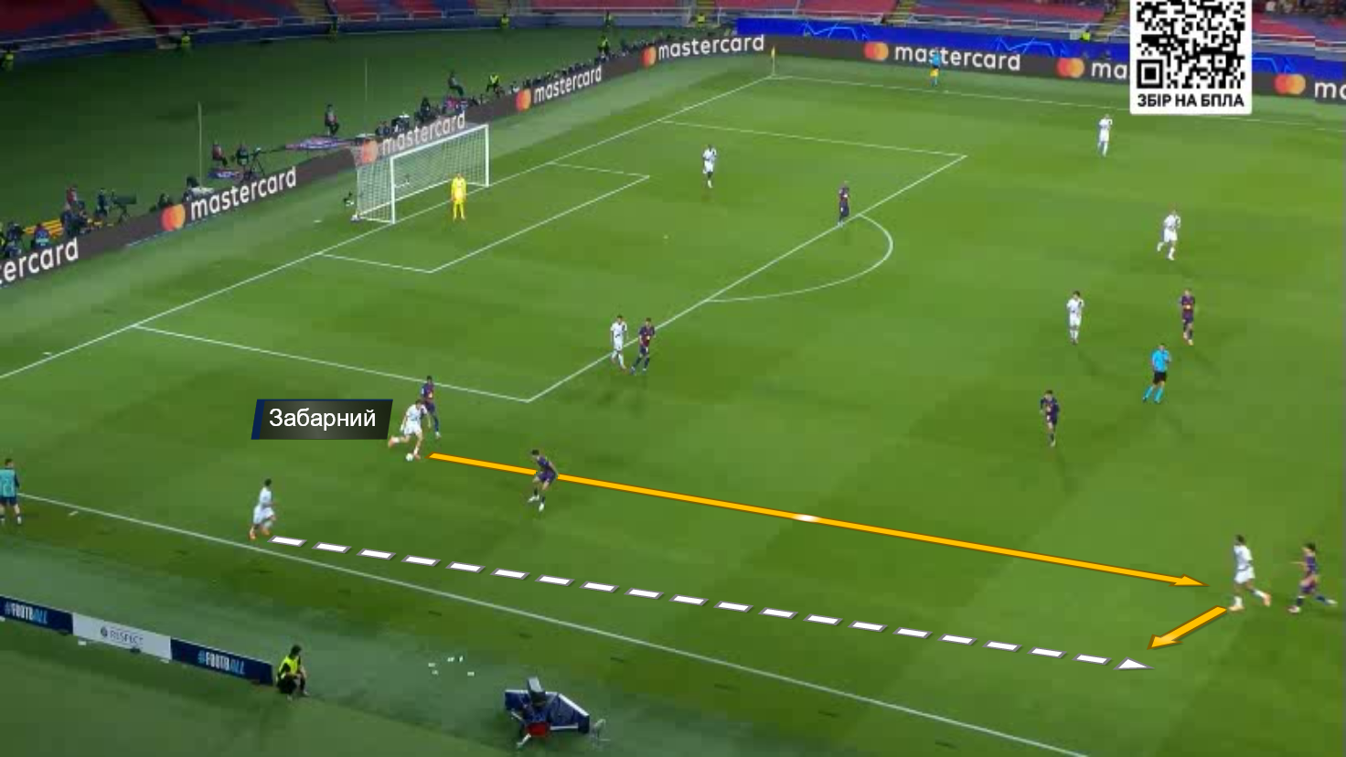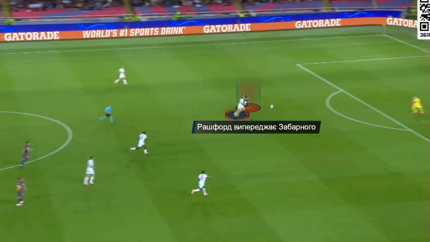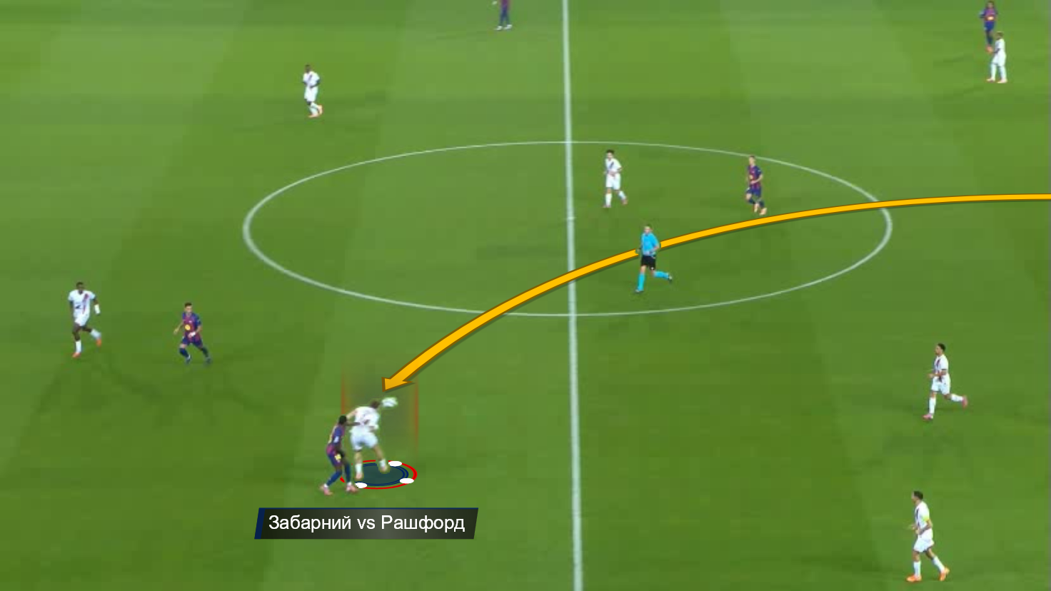 В одному епізоді 1-в-1 Забарному вдалося відібрати м'яч у Рашфорда, та ще й атаку розпочати. Окрім цього, варто відзначити надійну позиційну гру в кількох важливих моментах. Вже на 2-й хвилині Ферран вривався на правий край штрафного під проникний пас Ямаля, однак подальший удар накрив українець. Він зіграв чітко й до кінця.