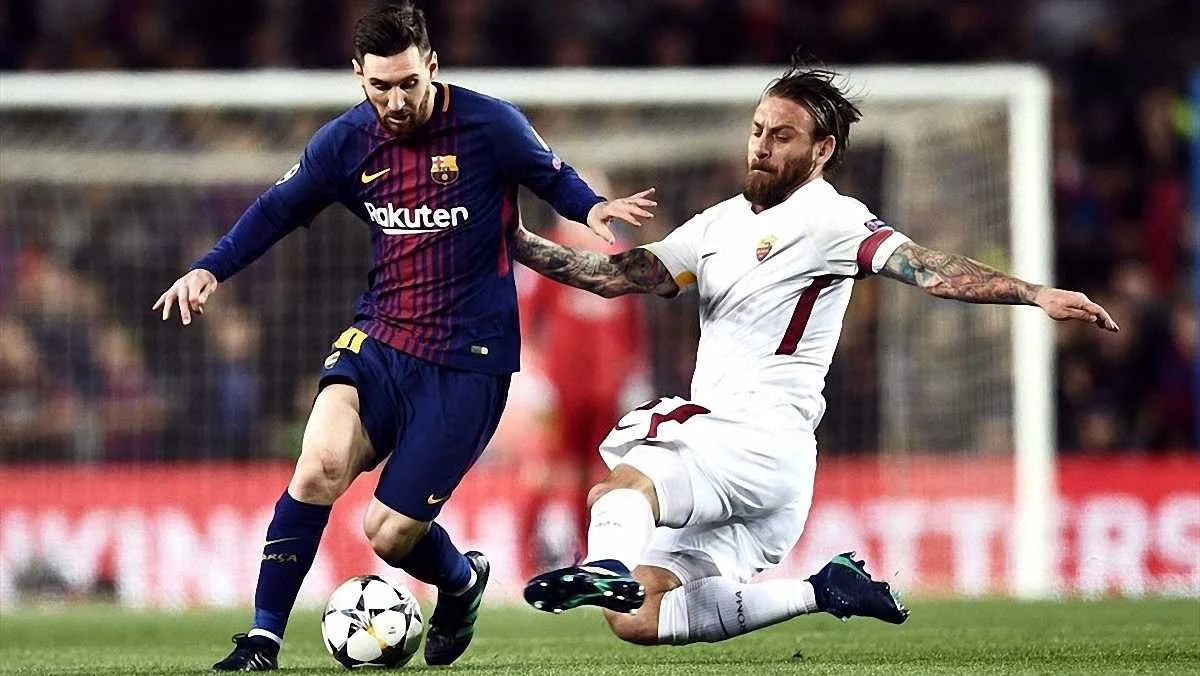 Пропущений гол наприкінці тайму – це, звичайно, помилка опорної зони Роми, однак варто відзначити, що Де Россі таки встиг перервати останню фазу фірмової комбінації Іньєсти та Мессі. Просто через свою неповороткість не зробив це вчасно.