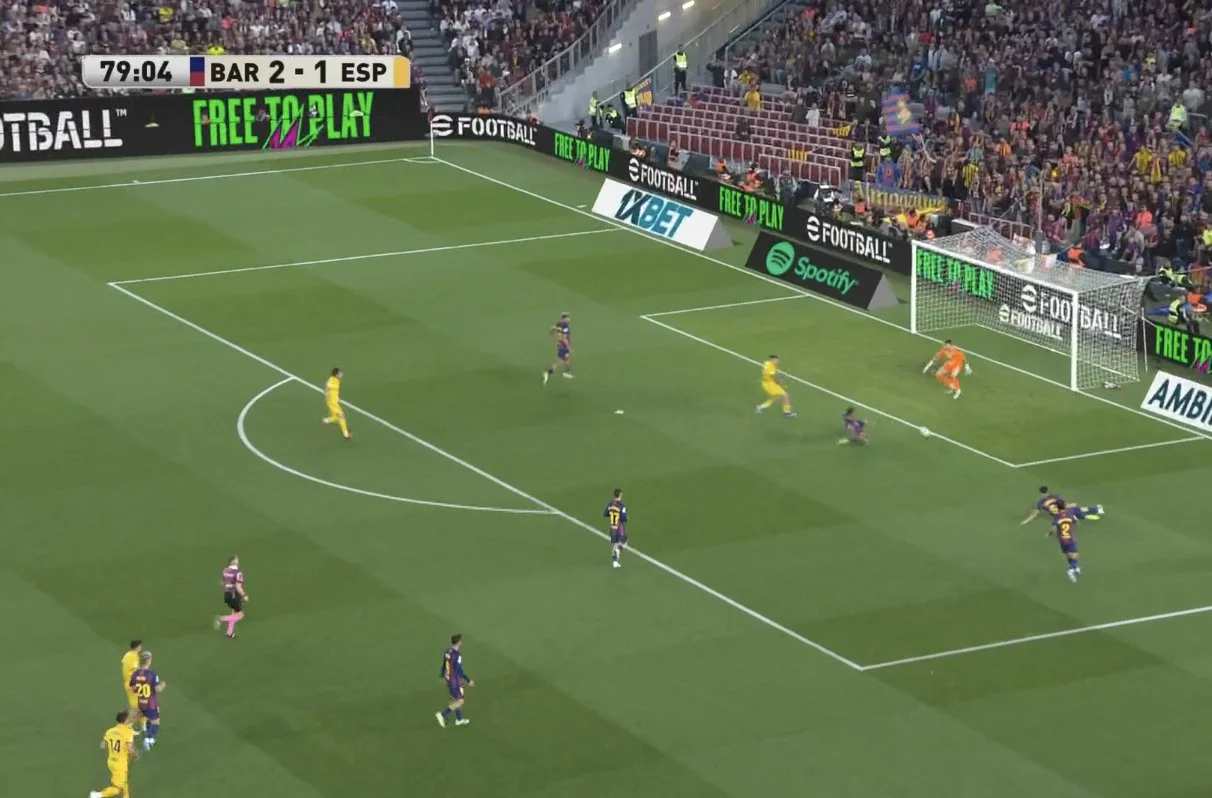 Барса відповіла голом зі стандарту на 54-й хвилині. Ерік Гарсія скинув подачу з дальньої стійки вздовж воріт, а Ферран підправив її у ворота. Втім, VAR заступився за "папуг", знайшовши ось такий офсайд.