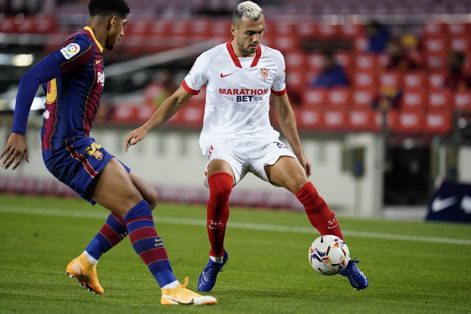 Поєдинок стартував доволі динамічно, причому андалусійці виглядали агресивніше. Вже на 4-й хвилині Окампос замкнув подачу з кутового ударом вище воріт, а його постріл з лінії штрафного на 6-й заблокували. Ще за дві хвилини "рохібланкос" вийшли вперед завдяки розіграшу корнера з подачею від Сусо на Кунде – м'яч від Жюля влучив у Френкі де Йонга й відскочив точно на ногу Люку де Йонгу. Голландський нападник моментально розстріляв ворота Барси – 1:0! Втім, вже на 10-й каталонці зрівняли рахунок: Мессі закинув м'яч з глибини на хід Альбі, Хесус Навас у спробі перервати передачу скинув "круглого" на Коутінью, а той одразу ж пробив у кут з меж штрафного – 1:1! Це був перший гол Філіппе за Барселону з травня 2019 року.