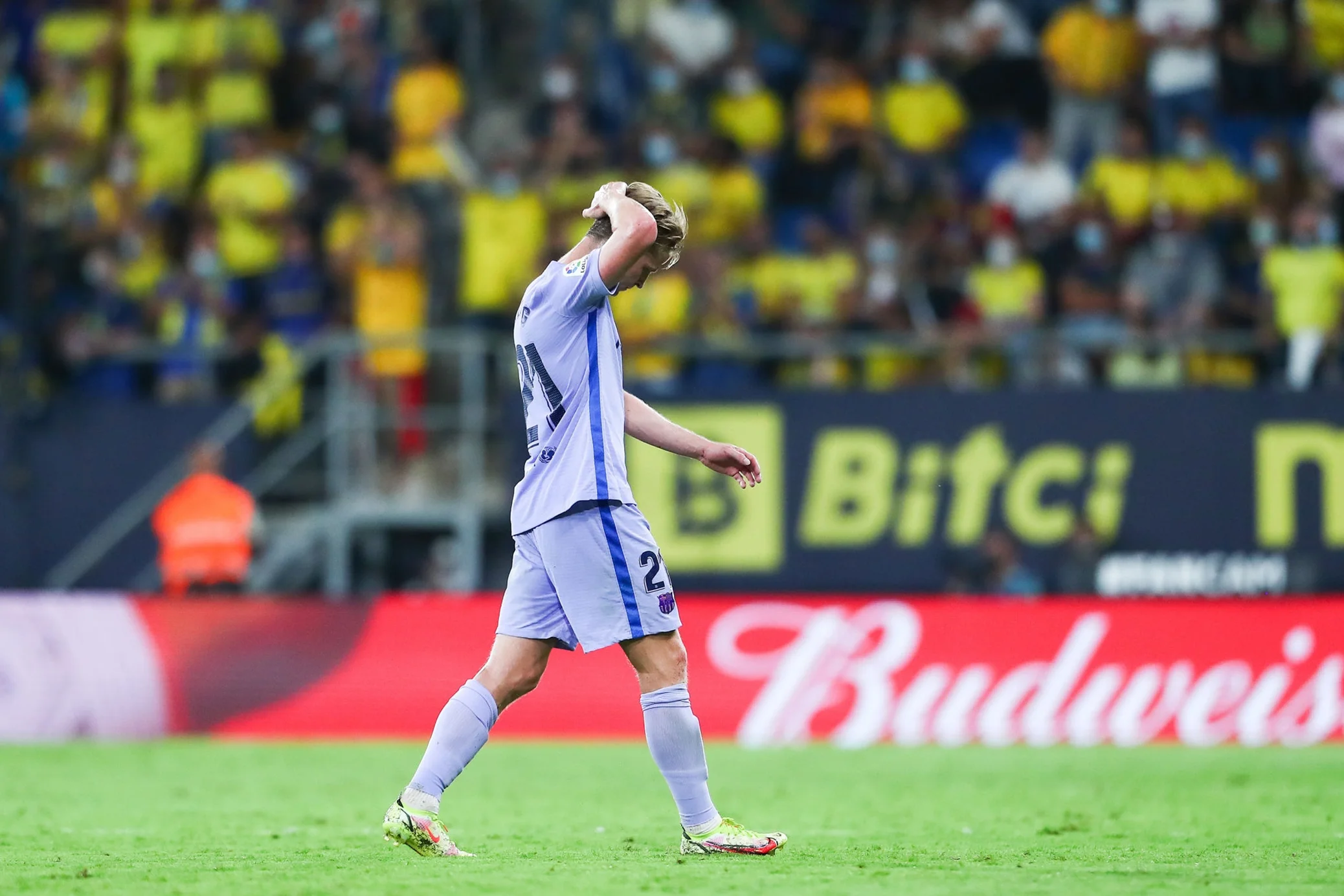 Здавалося, що зараз Кадісу буде непереливки, однак тиск Барселони швидко вилетів у трубу. Господарі легко вирівняли хід зустрічі, нічого не дозволяючи супернику, а потім каталонці ще й у меншості залишились! Підвів Френкі де Йонг: на 61-й хвилині Карлос дель Серро Гранде показав йому жовту картку (тисячну в кар'єрі цього арбітра), а за чотири хвилини нідерландець пішов у агресивний підкат прямою ногою – м'яч він вибив, але це була друга жовта. Рональду Куману довелося знімати з гри і Люка де Йонга, випустивши в центр поля Коутінью.