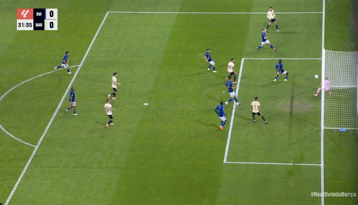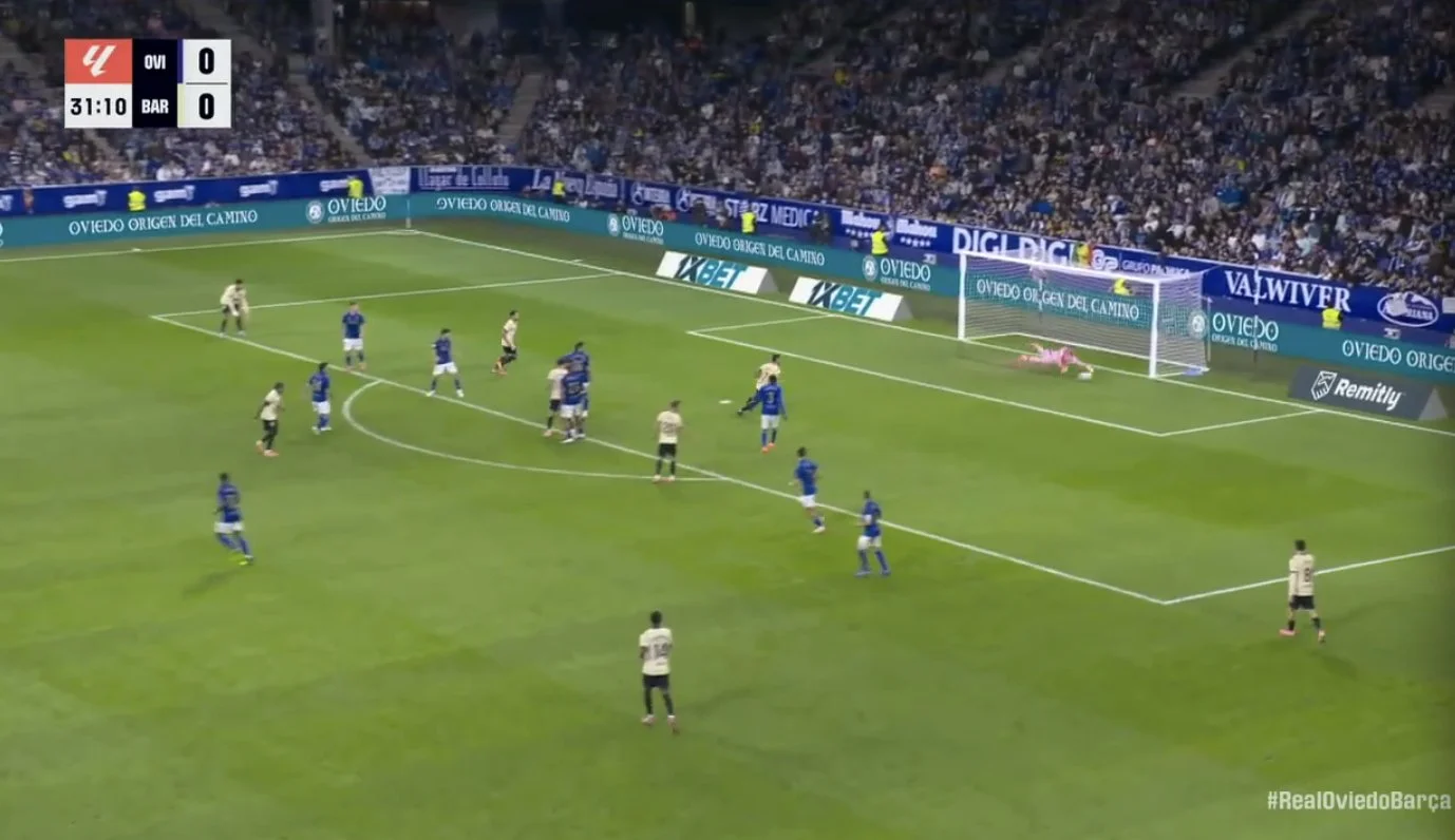 І все ж Ов'єдо дуже незручний. Новачок Прімери якісно припаркувався на власній третині, рідко залишаючи простір в ударних зонах. При 11 пострілах у першому таймі гості награли всього на 0,48 очікуваних голів – тоді як господарі мали 0,57 завдяки трьом ударам з лінії воротарського (після кутових і штрафних). Щоправда, цифри говорять тільки про проблеми Барселони з креативом у фінальній третині.
