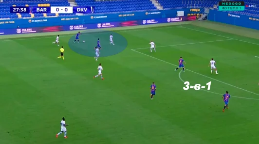 "Блаугранас", як і Баварія з Бенфікою, не ставлять на результат, однак вони явно сильніші за рівнем своєї тактичної підготовки й організації – особливо на тлі мюнхенців. Каталонці швидше працюють з м'ячм, у них шикарно поставлена робота на просування через передачі, вони дисципліновано заповнюють усі 5 вертикалей в атаці (фланги, напівфланги й центр). При цьому помітно, що колектив був знайомий зі стилістикою Динамо й був готовий до неї – до цього ми ще повернемось.