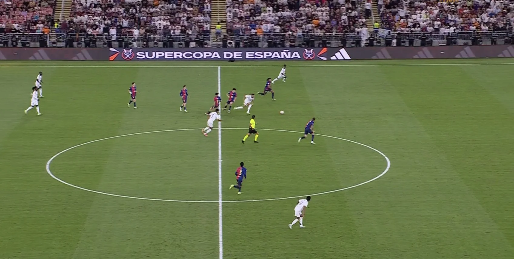 Насправді цей елемент у "вершкових" був відпрацьований добре. Барселона, здається, жодного разу не спіймала Вінісіуса й Мбаппе в офсайдну пастку, а Реал створив чимало перспективних епізодів з такої гри. Проблема крилась у відсутності інших варіантів атаки, а також у вкрай слабкій роботі в обороні.