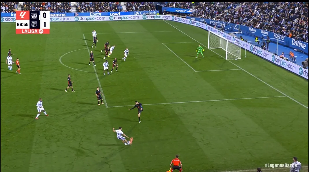 Леганес же організував ще дві вбивчі нагоди. Так, Діоманде на 43-й хвилині розігнав контратаку з передачею на хід Рабі, а той відклеївся від Кунде й вгатив з лінії штрафного. Сфера пройшла поруч з лівою дев'яткою!