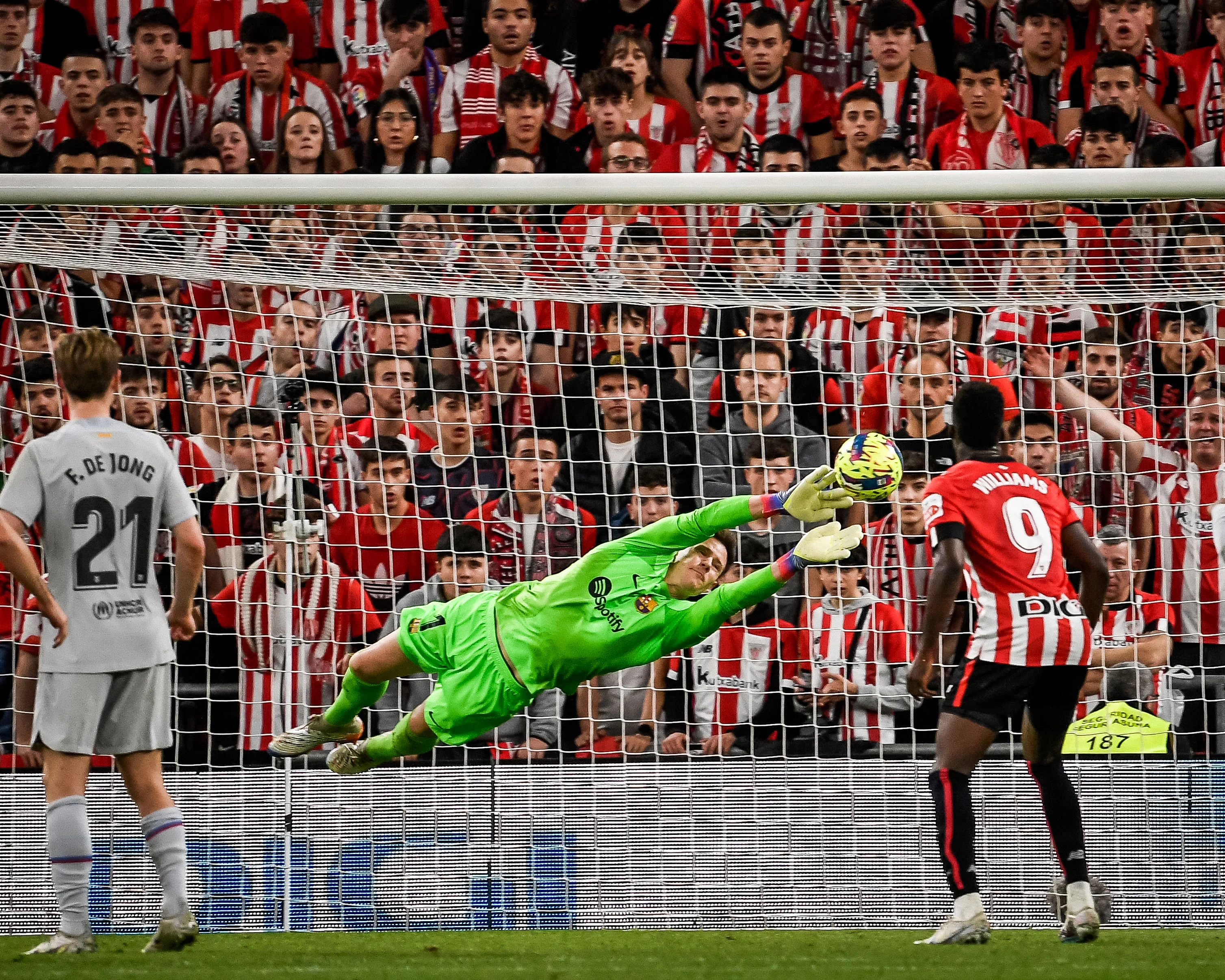 Даний епізод надихнув басків, і вже на 32-й німець змушений був виконувати сейв – це Іньякі Вільямс стріляв з лівого краю штрафного в ближній кут, завершуючи пас від невтомного Беренгера. Тер Штеген перевів м'яч на кутовий, подачу з якого замкнув Рауль Гарсія. ПОПЕРЕЧИНА врятувала Барсу!