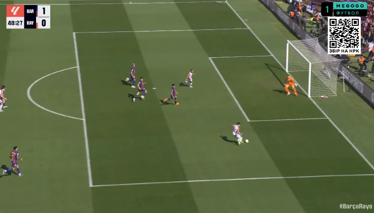 Барселона огризнулася на 56-й хвилині ефектним зміщенням Ямаля повз кількох захисників – втім, подальший удар Ламіна пройшов повз дальній кут. Нічого гострішого господарі не створювали аж до 80-ї хвилини, коли Баталья вийшов з воріт на фланг і дозволив Рафіньї відібрати м'яч. Бразилець прострілював з гострого кута, але на замиканні нікого не опинилось.