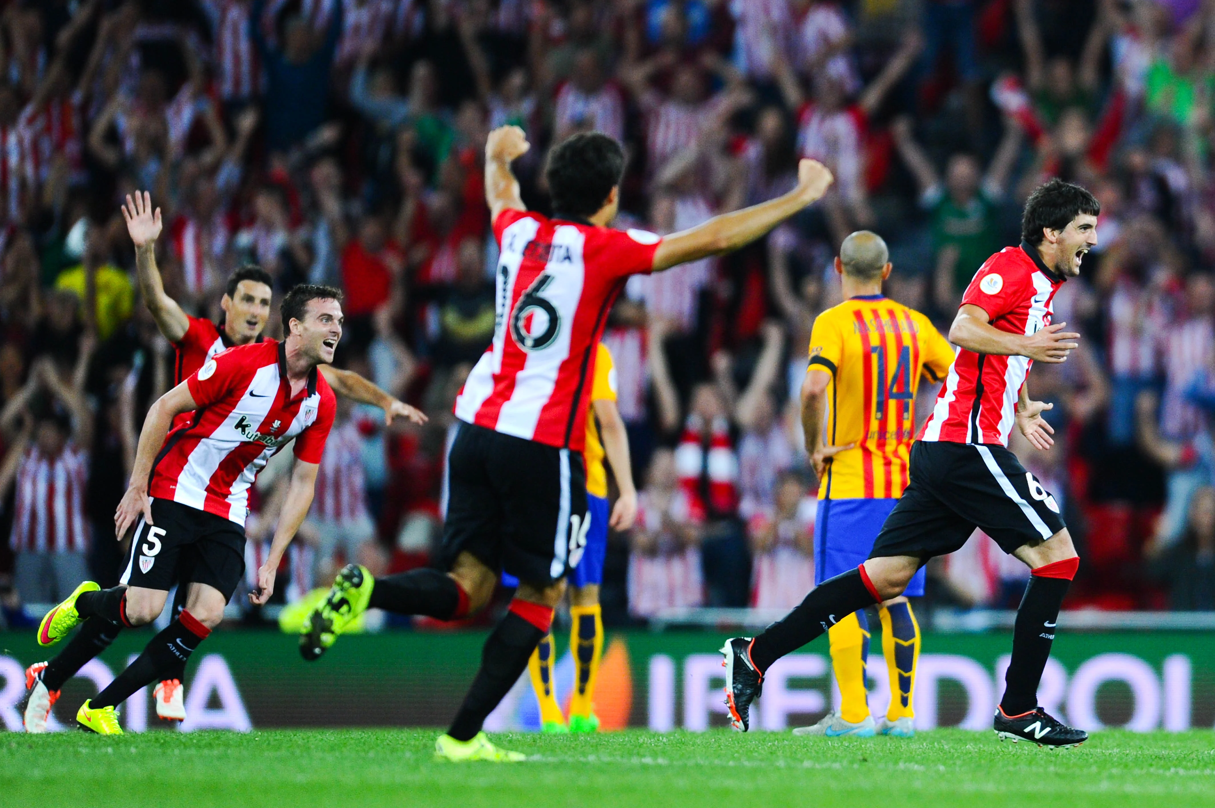У перші хвилини "Барселона" вперто намагалась завести гру за своїм сценарієм, проте неквапливий темп гостей легко збивали баски за допомогою пресингу. Лінію переслідування "Атлетік" поступово наближав до воріт "Барси", допоки вона не занервувала.