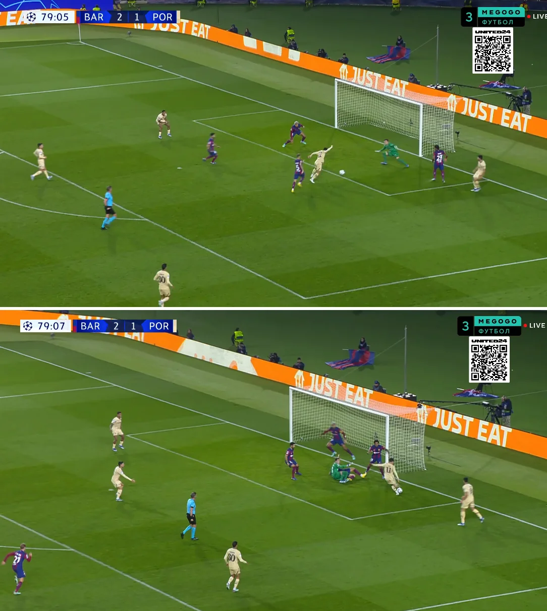 Втім, каталонці після цього моменту заколихались. Порту несподівано притиснув господарів. Вже на 28-й хвилині Галену отримав передачу від Маріу, обіграв Кунде й потужно пробив з правого краю штрафного – Пенья парирував, однак на 30-й хвилині йому таки довелося виймати м'яч із сітки.
