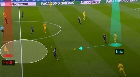 Квадрати Хаві – один з ключів мадридського Класіко. Барса знищила Реал завдяки контролю з класними переміщеннями хавбеків. Педрі та Де Йонг легко знаходили вільний простір у центрі поля. Господарі спочатку намагалися високо накривати суперника, але швидко відмовилися від цієї ідеї. Чому? Той же Гарсія однією вертикальною передачею відрізає 4-5 гравців. Зрештою команда Анчелотті опустилася трохи нижче… а проблеми залишилася все ті ж.