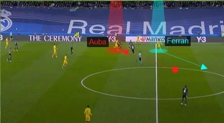 Відсутність травмованого Менді зіграла Барсі на руку. Повільний Начо не мав шансів у протистояннях з Дембеле. Французький вінгер отримував вагони часу для прийняття рішень і використовував свій найбільший козир – швидкість. Саме у цій зоні каталонці найчастіше розігрували більшість в атаці. Звідси ж – перший м’яч Обамеянга. Дембеле обіграв Начо і результативно асистував габонцеві.