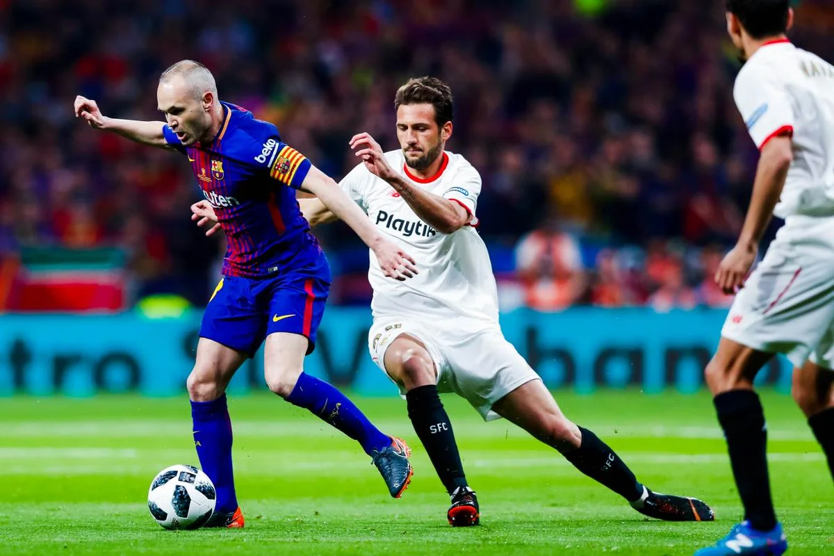 Андрес Іньєста проти гравців Севільї / фото: офіційний сайт ФК Барселона