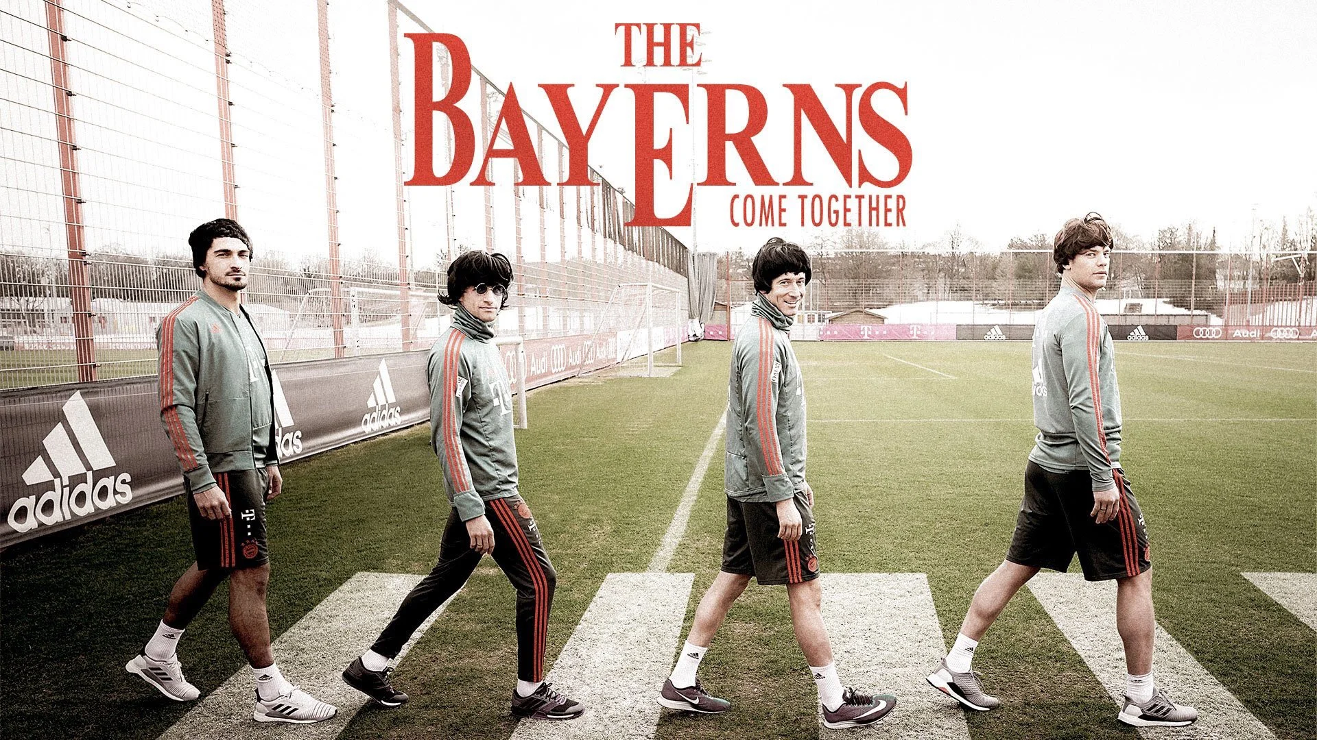 Лідери мюнхенської роздягальні готуються до виїзду в Ліверпуль, пародіюючи легендарну групу "Beatles" з її знаменитим альбомом "Abbey Road". Матс Хуммельс, Томас Мюллєр, Роберт Лєвандовскі та Мануель Нойєр в образах Джона Леннона, Пола Маккартні, Рінго Старра та Джорджа Харрісона. "The Bayerns" – ефектно.
