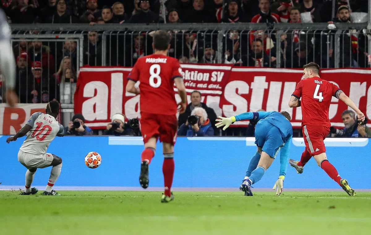 Баварія одразу пішла в атаку, але на 75-й хвилині ледь не потрапила у полон: Салах увірвався у карний майданчик, прибрав Рафінью та пробив таким чином, що вийшла класна передача на Мане – і знову Нойєр витягнув мюнхенців, вибивши м'яч ногою.
