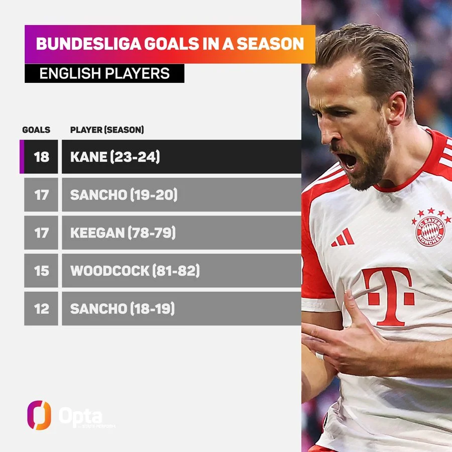 Таким чином, Кейн став першим футболістом в історії Бундесліги, якому вдалося забити 18 голів у 12-ти перших матчах чемпіонату. Крім того, він став першим англійцем, якому вдалося відзначитись 18 м'ячами у одному сезоні чемпіонату Німеччини.