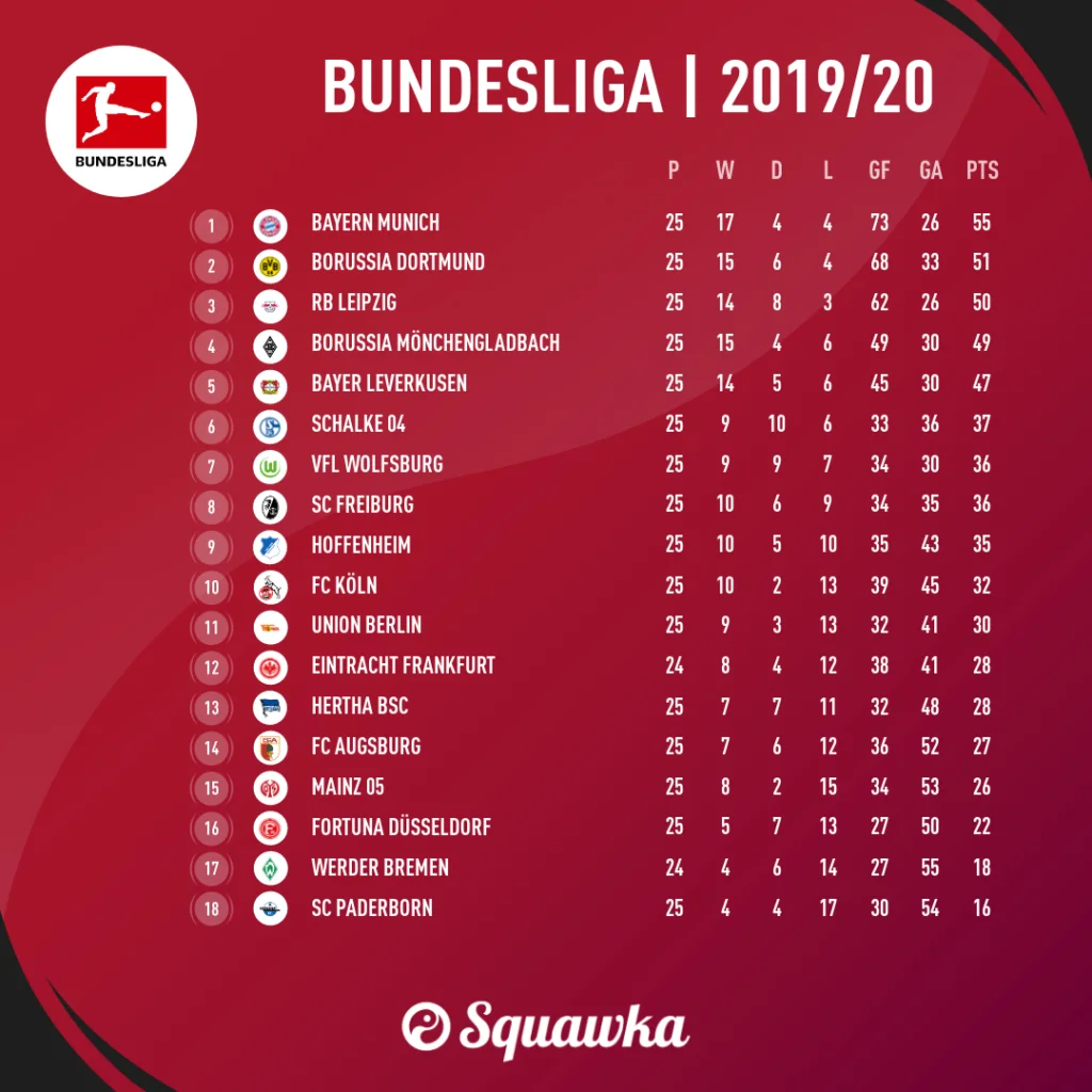 Коронавірус застав Баварію у розкішній формі. Мюнхенці демонстрували найкращий у Європі футбол і наближалися до восьмого поспіль чемпіонства. Реалії Бундесліги дозволяють рекордмайстеру пів сезону експериментувати і грати невиразно. У другому колі все стає на свої місця, а Баварія виносить срібну салатницю на Маріенплатц. З величезною ймовірністю так би й було цього року, якби чемпіонат дограли у звичному режимі. Гансі Флік налагодив пресинг та позиційну атаку, відродив Томаса Мюллєра й Жерома Боатенга, вивів команду в лідери першості.