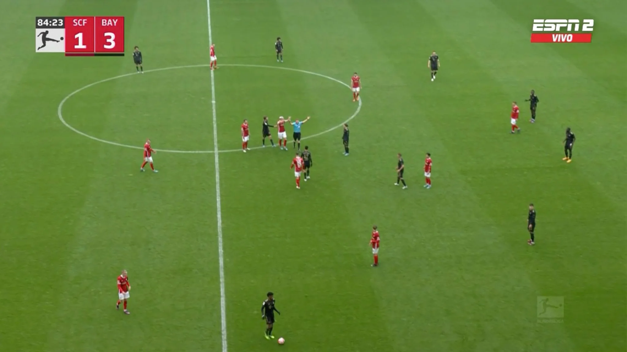 Водночас офіційний сайт Бундесліги пише, що на полі 17 секунд перебували одразу 12 гравців мюнхенців. Забітцер ще був на газоні, коли Коман ще не встиг його покинути. Це підтверджує і скріншот трансляції (футболісти "ротен" у чорному).