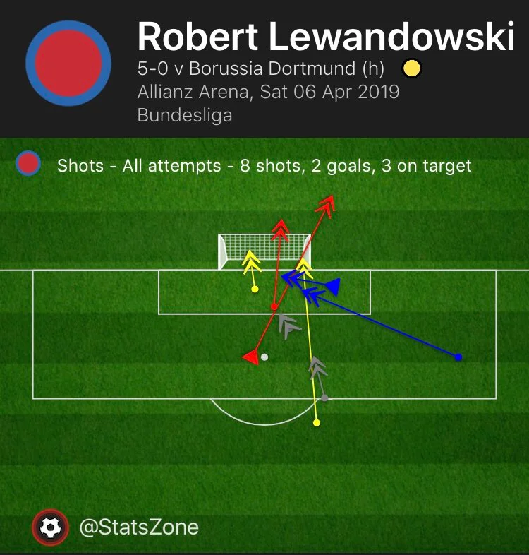 Лєвандовскі мав ще три можливості оформити дубль – останню з таких реалізував. Кімміх і Гнабрі розірвали лівий фланг "джмелів", а Роберт закотив м'яч у порожні ворота. 5:0. Баварія розгромила головного суперника та повернулася на вершину турнірної таблиці – у мюнхенців 64 очки. Борусія має на один бал менше. Програний Der Klassiker ще не поставив хрест на мріях про чемпіонство – попереду 6 турів.