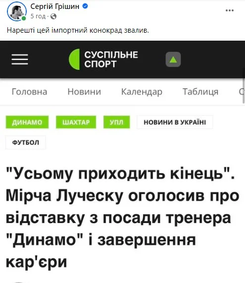 Реакція експертів та відомих уболівальників на відставку Мірчі Луческу після матчу 13 туру УПЛ Динамо – Шахтар (0:1).