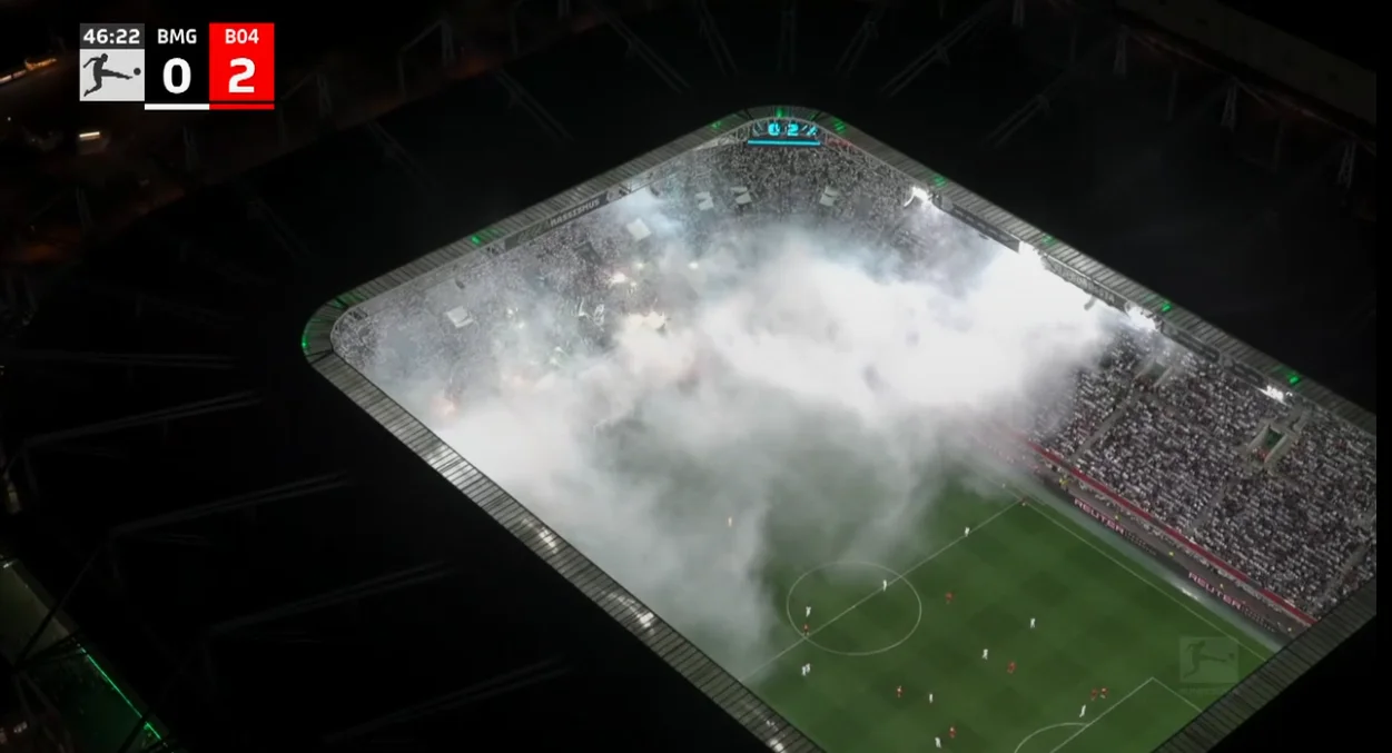 Перед перервою забила вже Борусія. Якщо з ударом Райтца Градецкі впорався, то Кляйндінсту ніхто не завадив. Втім, VAR дав вказівку не зараховувати гол. Розв'язку перенесли на другий тайм, старт якого затримали через піро фанатів. Майже десять хвилин половина поля була в густому димі. Здавалося, що пауза пішла на користь Байєру, "фармацевти" швидко організували парочку моментів. Однак ні – забили господарі. Після розіграшу штрафного відзначився Елведі.