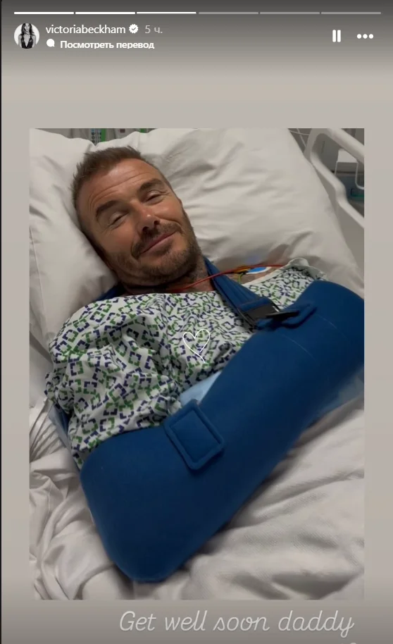Операція пройшла успішно, а Бекхема підтримувала його дружина Вікторія. В Instagram вона опублікувала фото чоловіка з пов’язкою та підписала: "Швидкого одужання, татусю".
