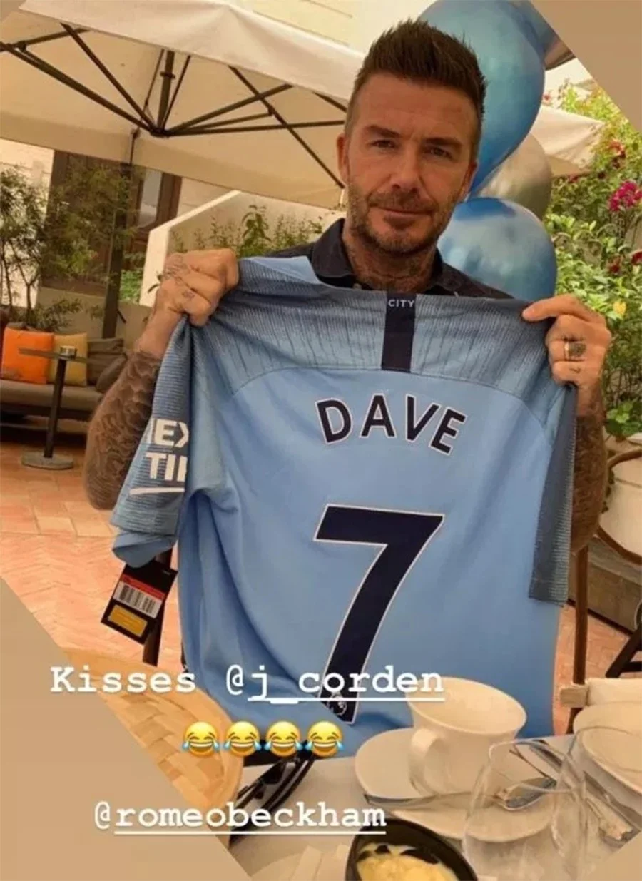 Мережу підірвало фото на якому 44-річний екс-гравець позує з футболкою заклятого ворога манкуніанців – Манчестер Сіті. Більше того, на екіпіруванні вказано ім'я "Дейв", яке Девід терпіти не може. Вираз обличчя Бекхема – безцінний.