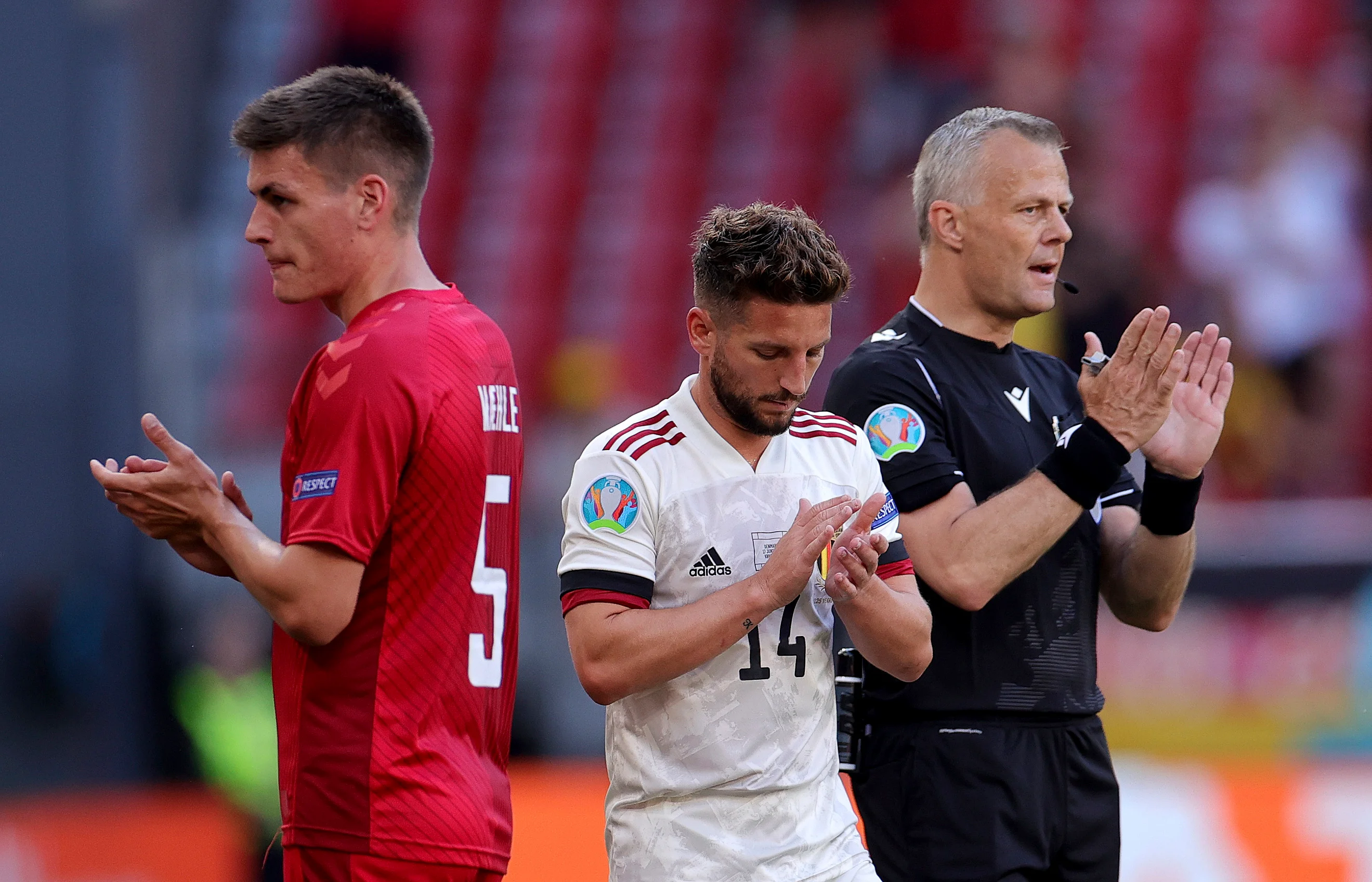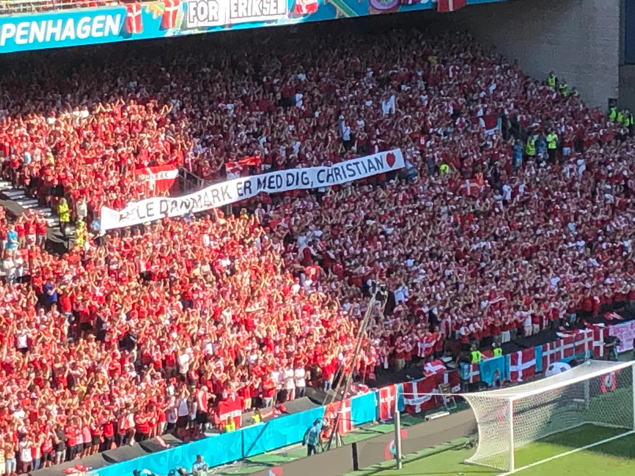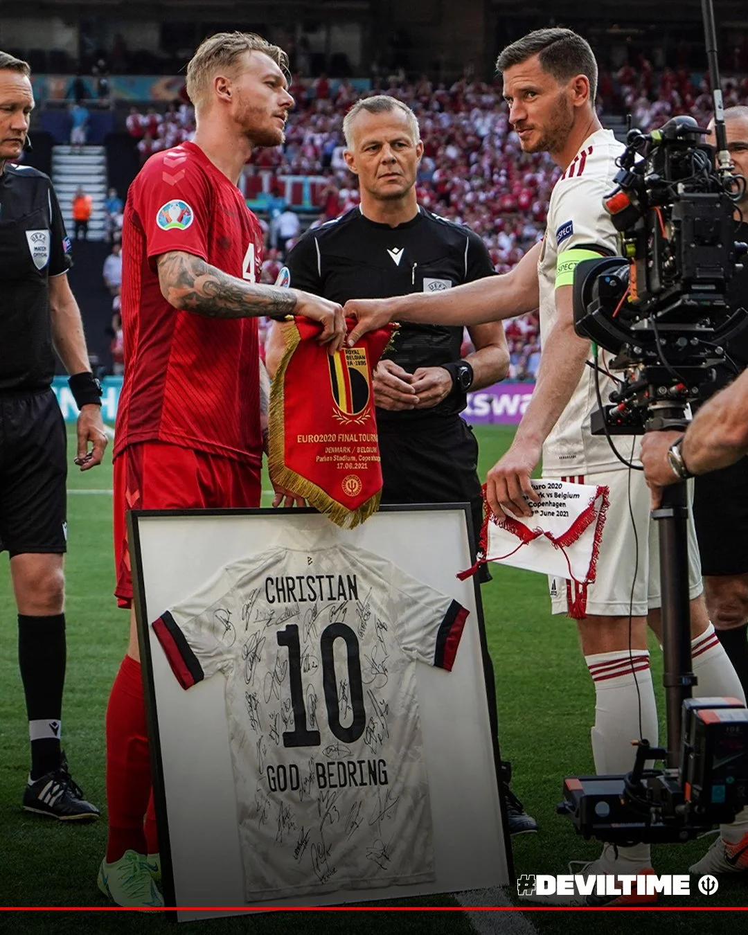 Звичайно ж, центральною фігурою вечора був Крістіан Еріксен. Бельгійці подарували велику футболку з ім'ям Еріксена та підписами своїх збірників з побажанням здоров'я. На трибунах з'явилися банери на честь Крістіана. А на 10-й хвилині Бйорн Кюйперс зупинив гру, і весь стадіон довго аплодував.