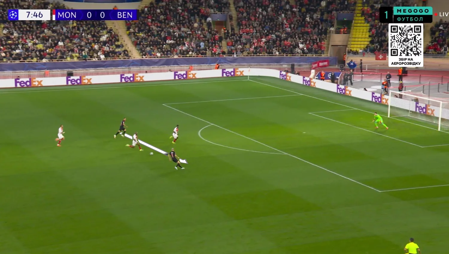 Також пригадується непоганий простріл на лінію воротарського, який перехопив Анатолій, і дальній удар Головіна по центру. Точно в руки голкіперу. Інших цікавинок у атаці Монако не було, хоча до перерви господарі домінували – Бенфіка ; тримала володіння на рівні 33%, здебільшого працюючи через дальні передачі й кроси.