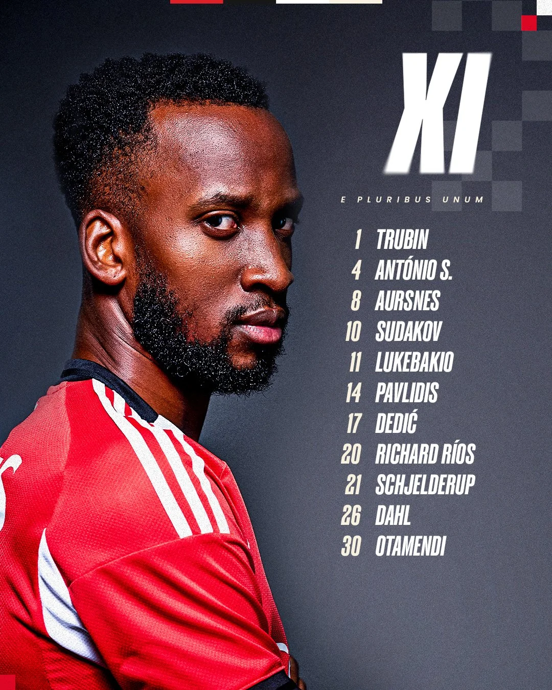 Стартовий склад Бенфіки: Трубін, Дедіч, Сілва, Отаменді, Даль, Ріос, Шельдеруп, Аурснес, Судаков, Люкебакіо, Павлідіс.