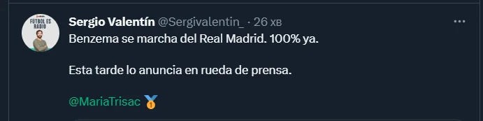 Як повідомляє іспанський журналіст Серхіо Валентін, вже в неділю, 4 червня, на спеціальній прес-конференції француз повинен оголосити про відхід з Реала. Очікується, що Бензема переїде до Саудівської Аравії.