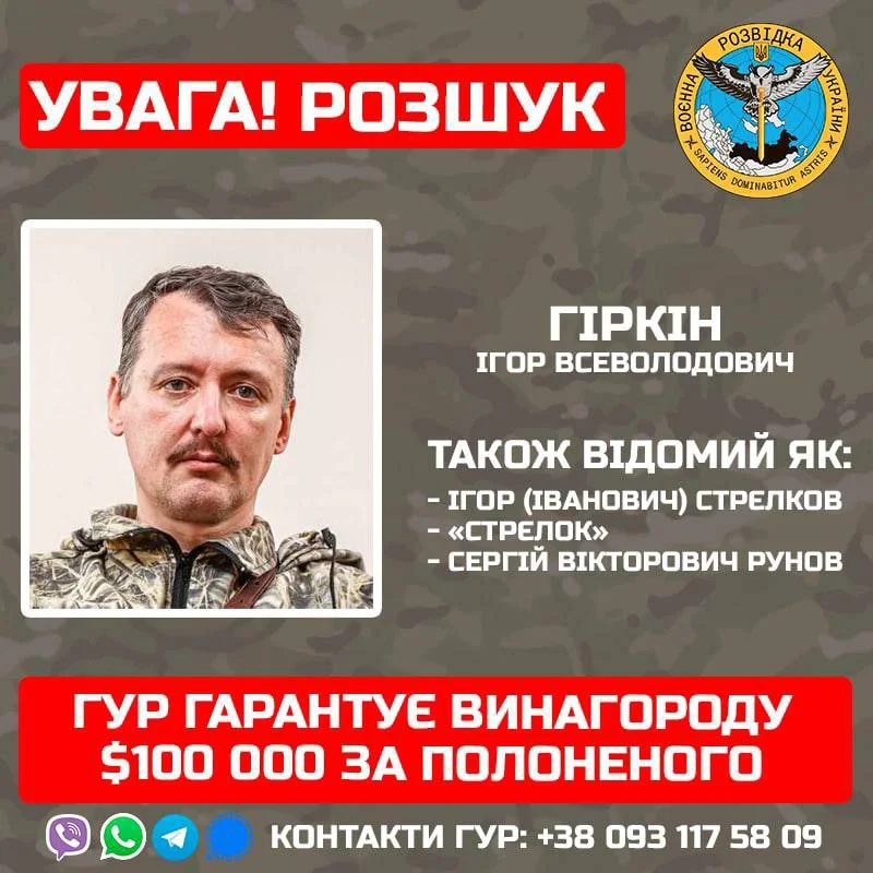 До слова, Головне управління розвідки вирішило підвищити ставки ще більше і пропонує за полоненого Гіркіна 100 тисяч доларів. Раніше ЗМІ повідомляли, що росіянин прибув на південь України для безпосередньої участі у бойових діях проти нашої держави.