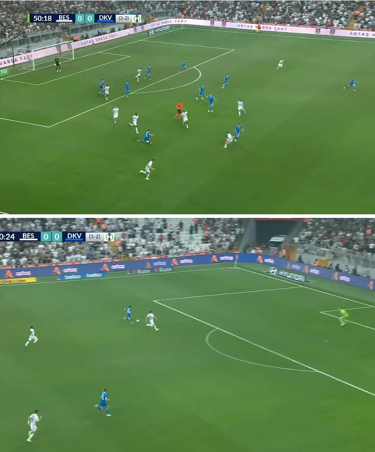 В цілому, перший тайм виглядав перспективно, однак по перерві все пішло шкереберть. Бешикташ додав як у інтенсивності пресингу, так і в агресії в позиційному наступі. Турки стали залучати більше гравців, хорошу підтримку почав надавати лівий фулбек Булут, а Абубакар почав відкриватись у глибині.