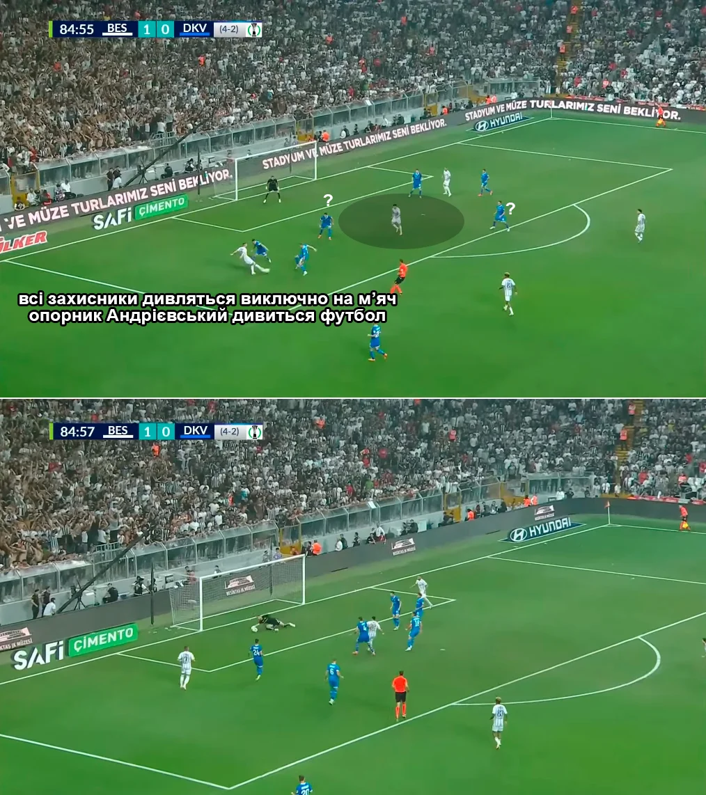 Динамо необхідно було забивати двічі, однак кияни просто зупинились. Жодного моменту в наступні 30 хвилин підопічні Мірчі Луческу не створили. Навіть натяків на них не було – а от Бешикташ почав куражитись, використовуючи вразливості "біло-синіх" на флангах та при контролі кросів...