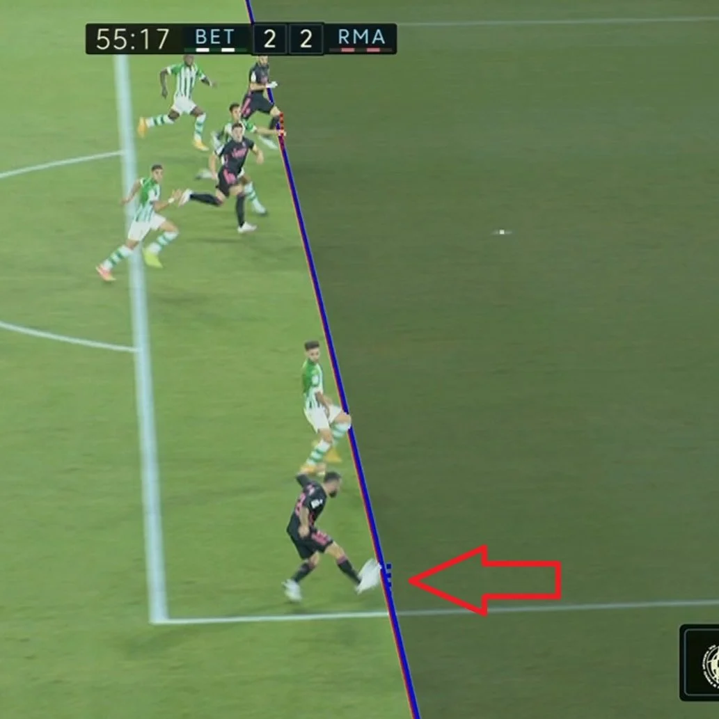 Втім, тут важко робити якісь висновки, адже іспанці малюють лінії офсайду так, як їм хочеться. На цьому стоп-кадрі офсайду немає: