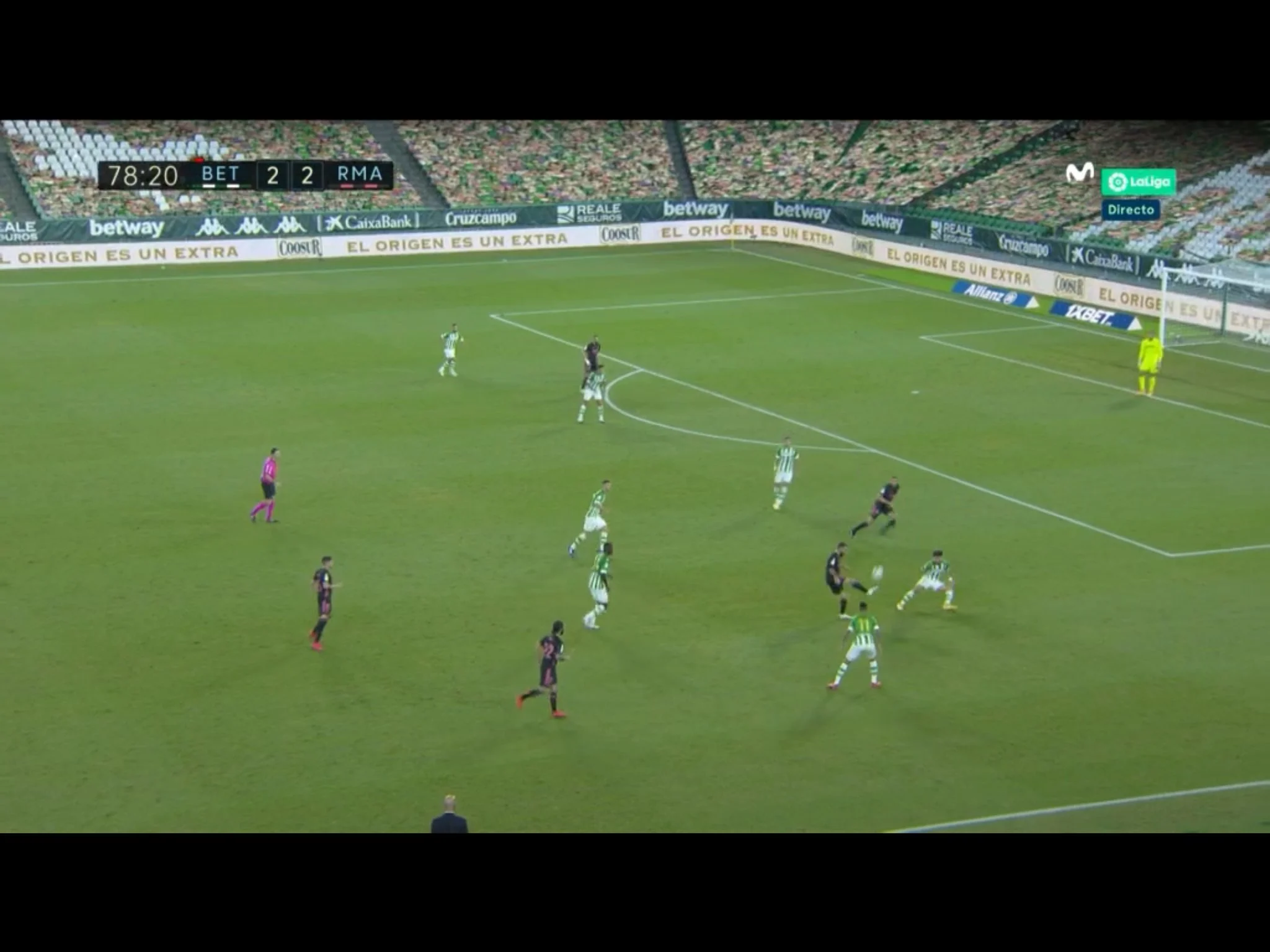 Після цього Зідан випустив на поле Борхи Майораля, однак на 77-й хвилині вирвати перемогу міг Бетіс – це Карвалью потужно пробив з лінії карного майданчика, але м'яч пролетів поруч з дальньою стійкою. Майораль на 79-й відповів перспективним вриванням у штрафний, але Бартра не дав йому завдати удару. На 80-й же Карвахаль грубо сфолив і цілком міг отримати другу жовту, однак арбітри замість цього переглянули повтор, помітивши гру рукою з боку Бартра в епізоді з Борхою! Рікардо Бенгоечеа призначив пенальті, а Рамос впевнено його реалізував – 3:2!