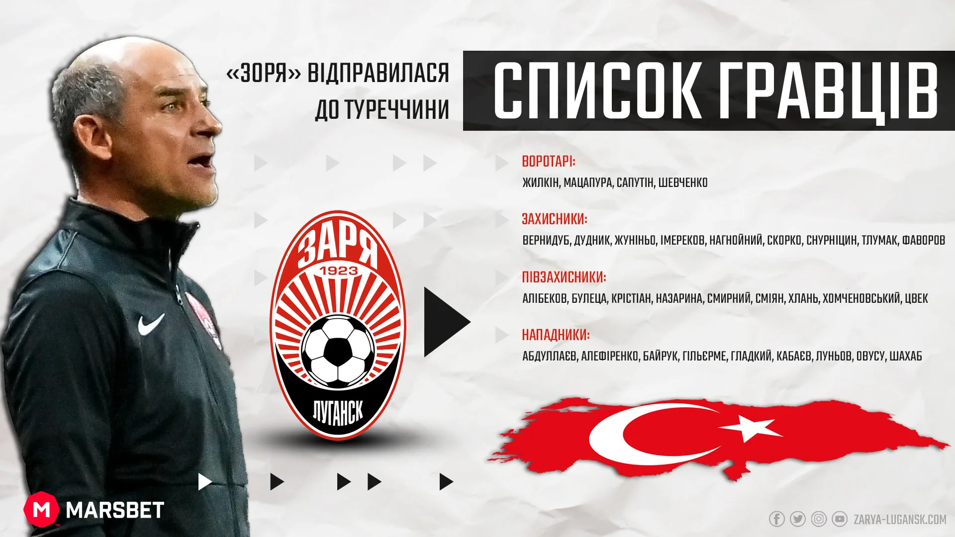 У неділю, 16 січня, Зоря вилетіла на зимовий збір до Туреччини, повідомляє офіційний сайт "мужиків".