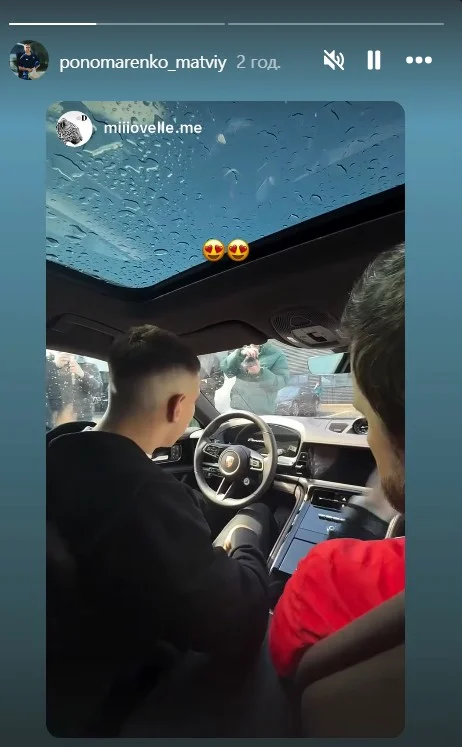 Щоправда, Матвій показав, що любить "поганяти" – цифри на спідометрі показують божевільні 245 км/год. Цікаво, що перед цим нападник виклав відео, перебуваючи за кермом Porsche, де намагався розібратись, як завести автівку.