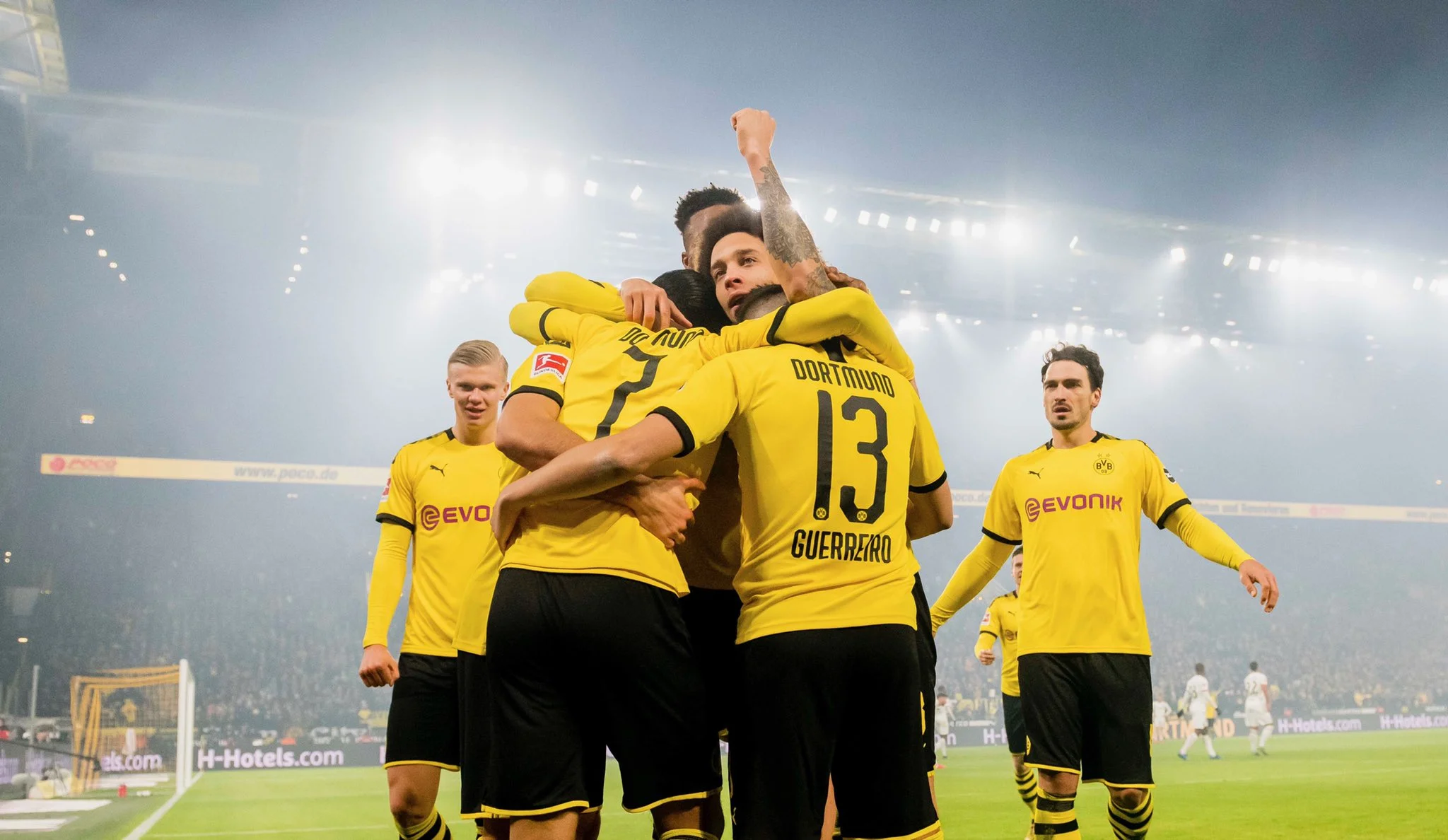 Легендарна "жовта стіна" спочатку мала червоно-білі кольори з гербом Німеччини, але в мить вони перетворились на жовто-чорні, а герб змінився логотипом Борусії Дортмунд. Напис внизу трибун засвідчив: "Велике місто Дортмунд – моя мрія".