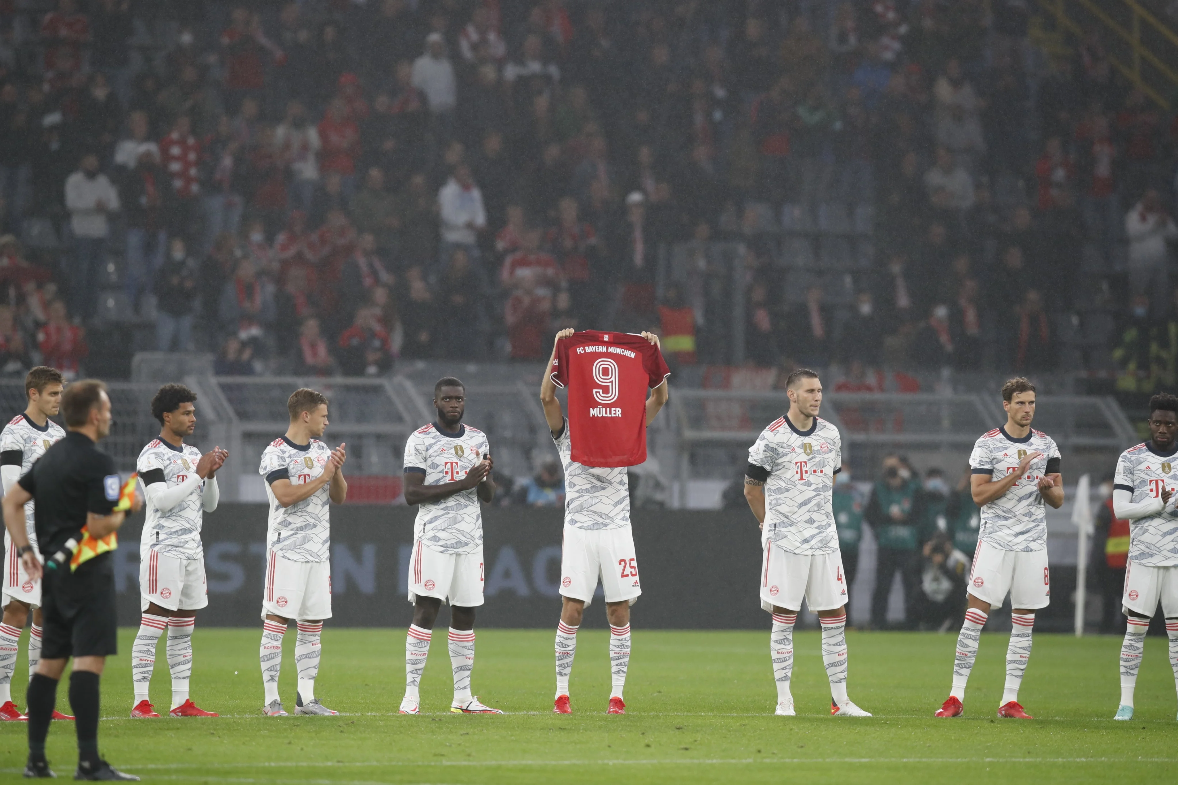 Після смерті Герда Мюллера мюнхенці були налаштовані виключно на тріумф у Дортмунді. Гості вийшли на поле у екіпіюванні з прізвищем "Мюллер" на спині, а під час хвилини мовчання Томас Мюллер підняв над собою футболку "бомбардира з Ньордлінгена". Вийшло красиво.